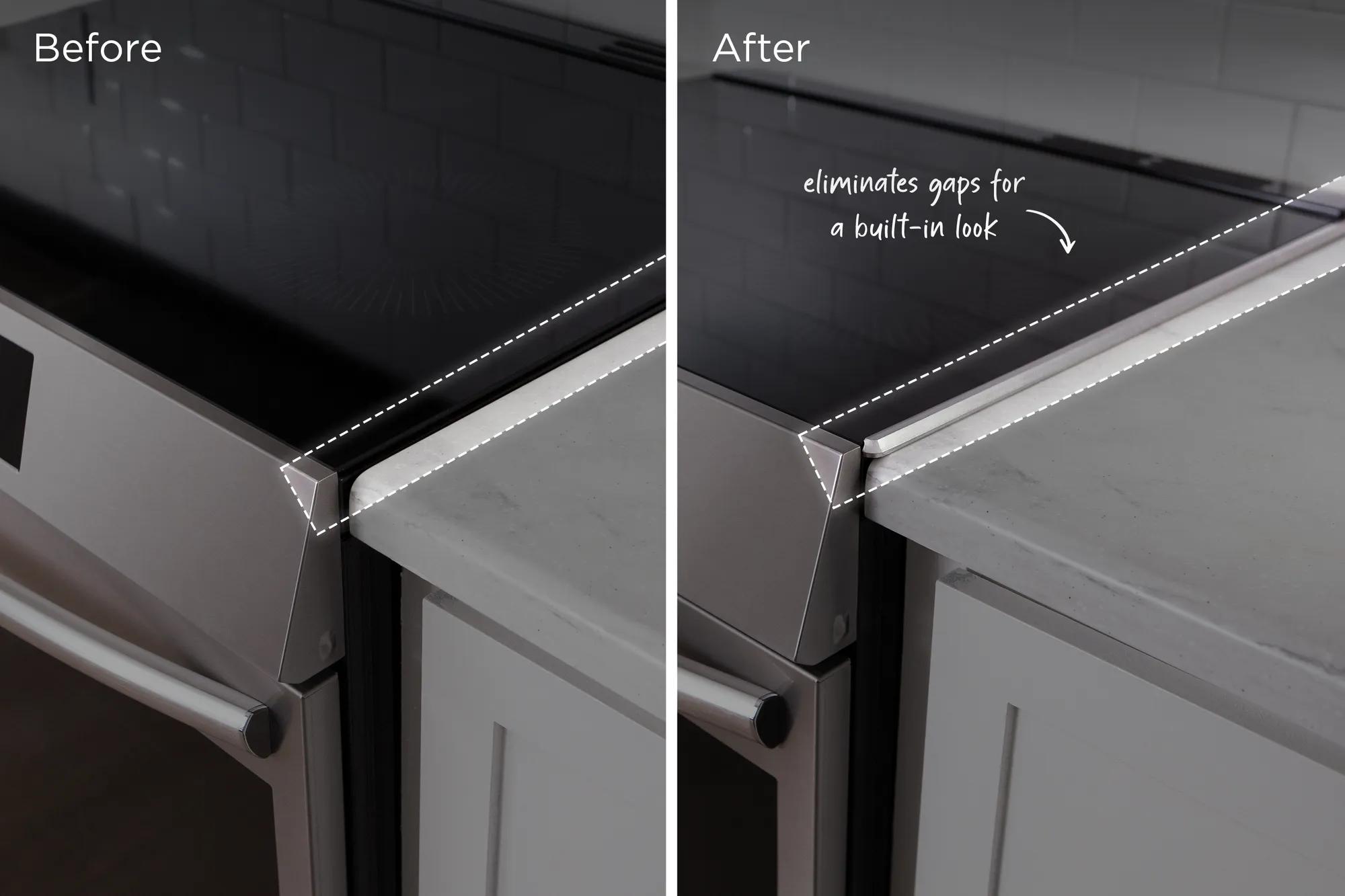 The 3 Piece Trim Kit creates a seamless look around the back and sides of your range by covering oversized countertop cutouts.