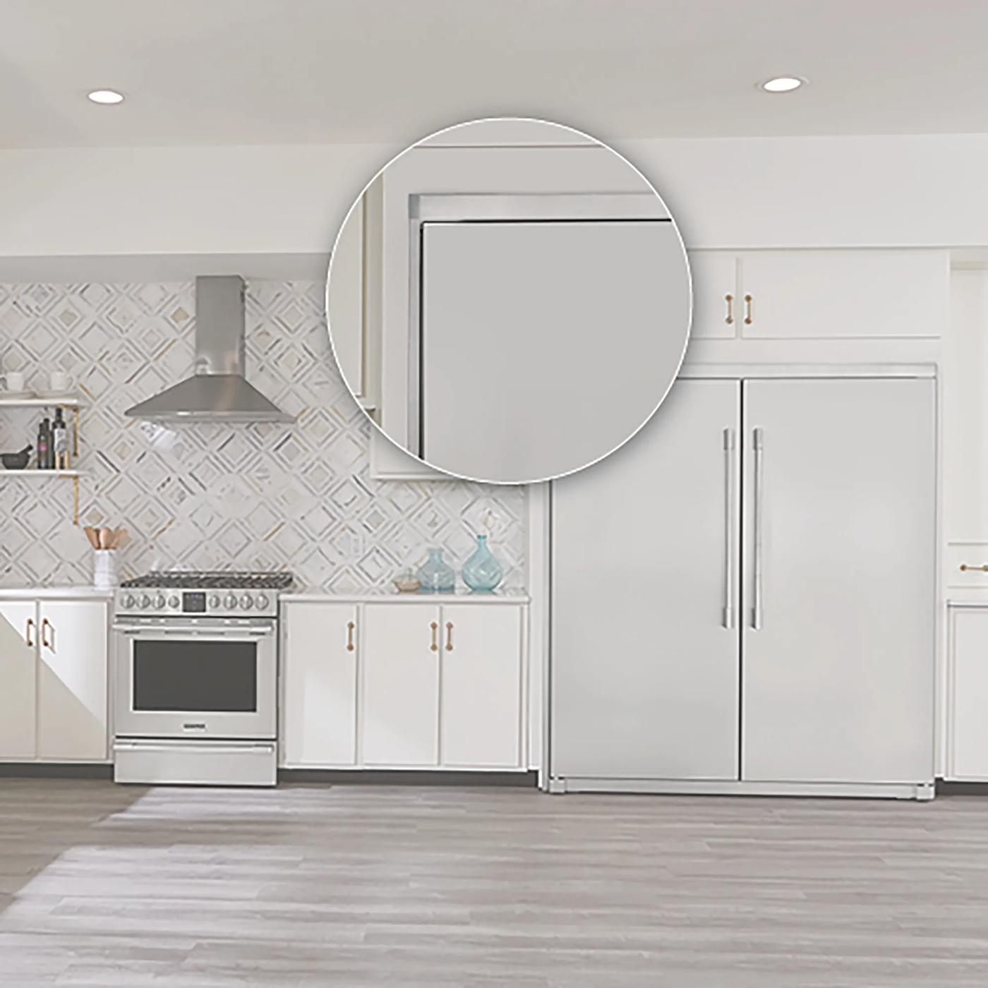 Customize the look of your dream kitchen with our Frigidaire Professional 75” tall dual trim kit. The flat design offers a seamless aesthetic that allows you to pair your single-door refrigerator & freezer together.