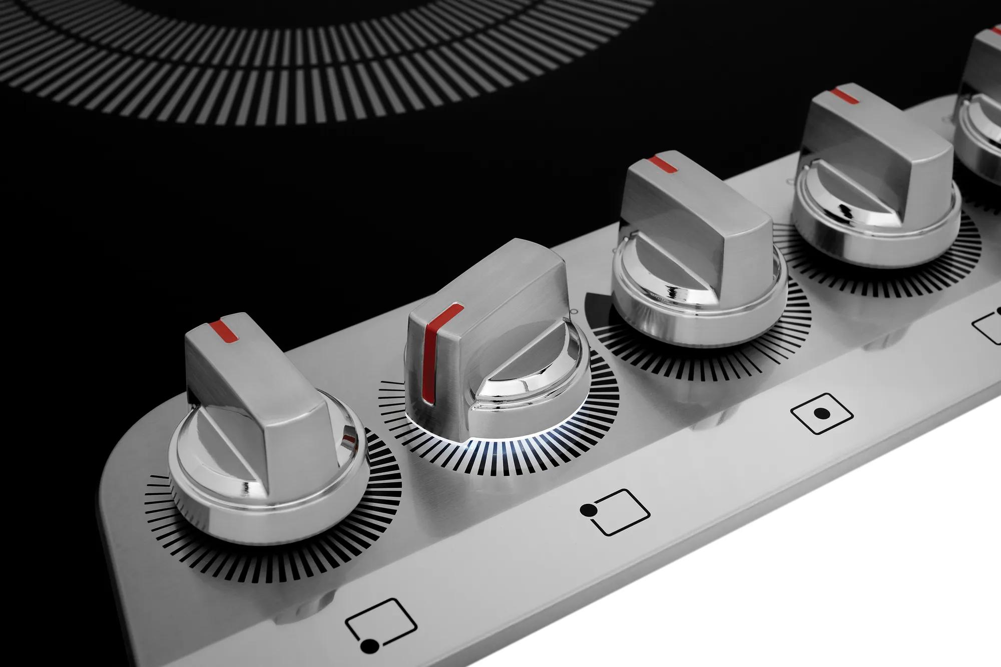Located on the front of the cooktop so you to adjust the temperature without reaching over hot items.