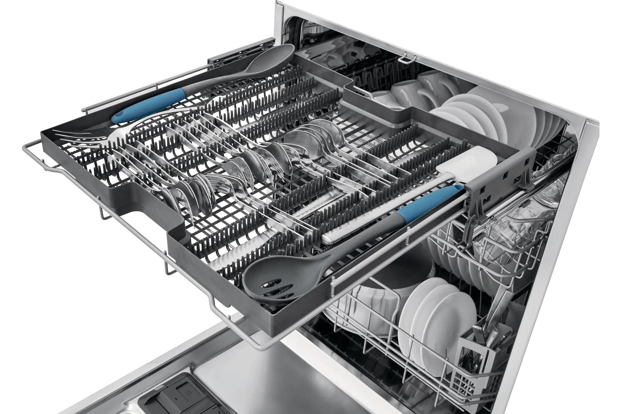 Save time loading and unloading and fit more with a third level rack that easily fits silverware, cooking utensils and tools.
