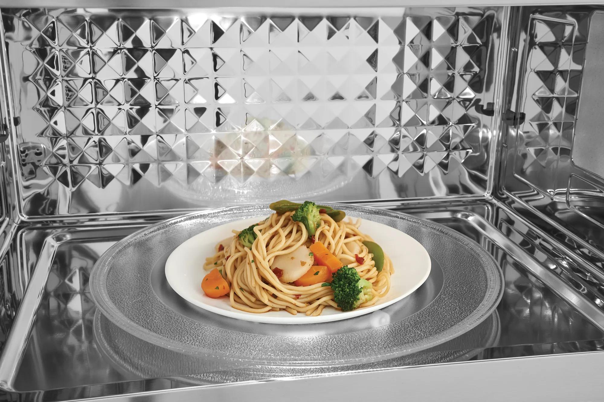 The convenience of convection baking, right in your microwave- preset options allow you to set temperatures up to 425 0F