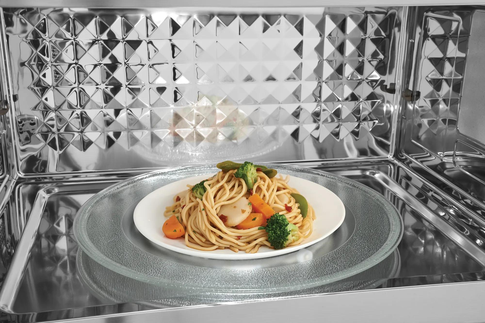 The convenience of convection baking, right in your microwave- preset options allow you to set temperatures up to 425 0F