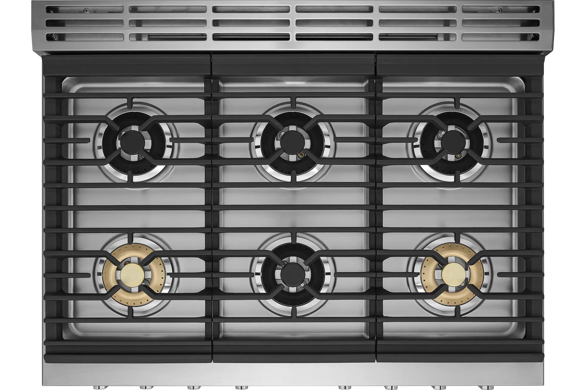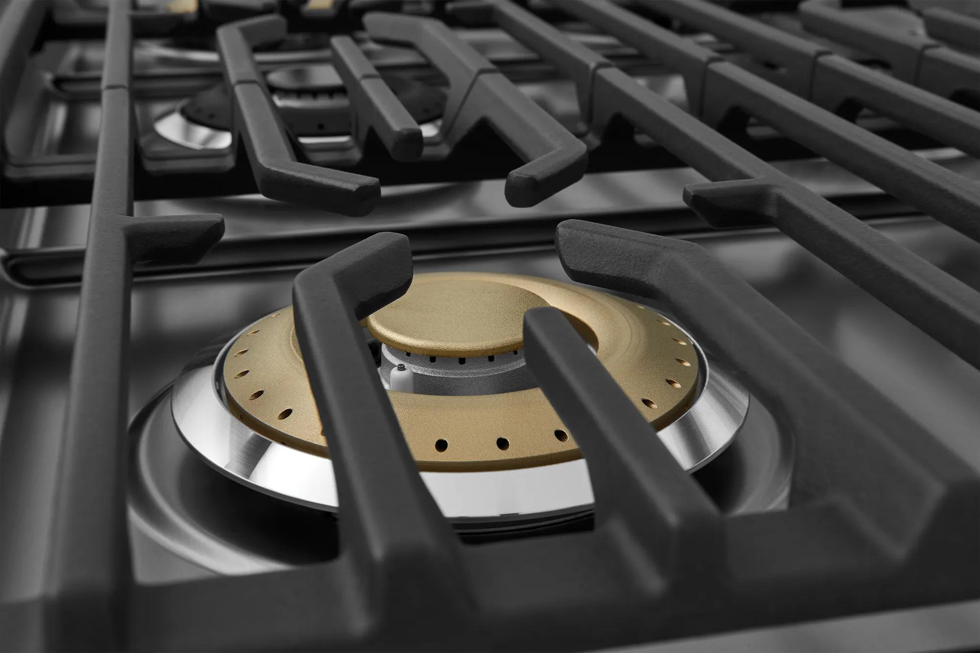 Six burner cooktop provides ultimate cooking flexibility with dual power burners that quickly go from boil to simmer.