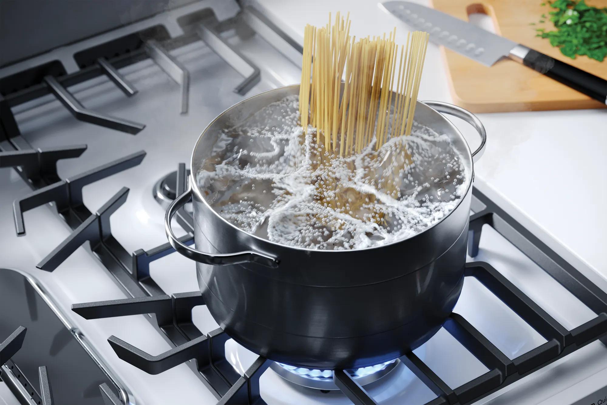 Designed to meet all of your cooking needs with a 5,000-BTU simmer burner, 10,000-BTU center oval burner, and 18,000-BTU Quick Boil Burner.