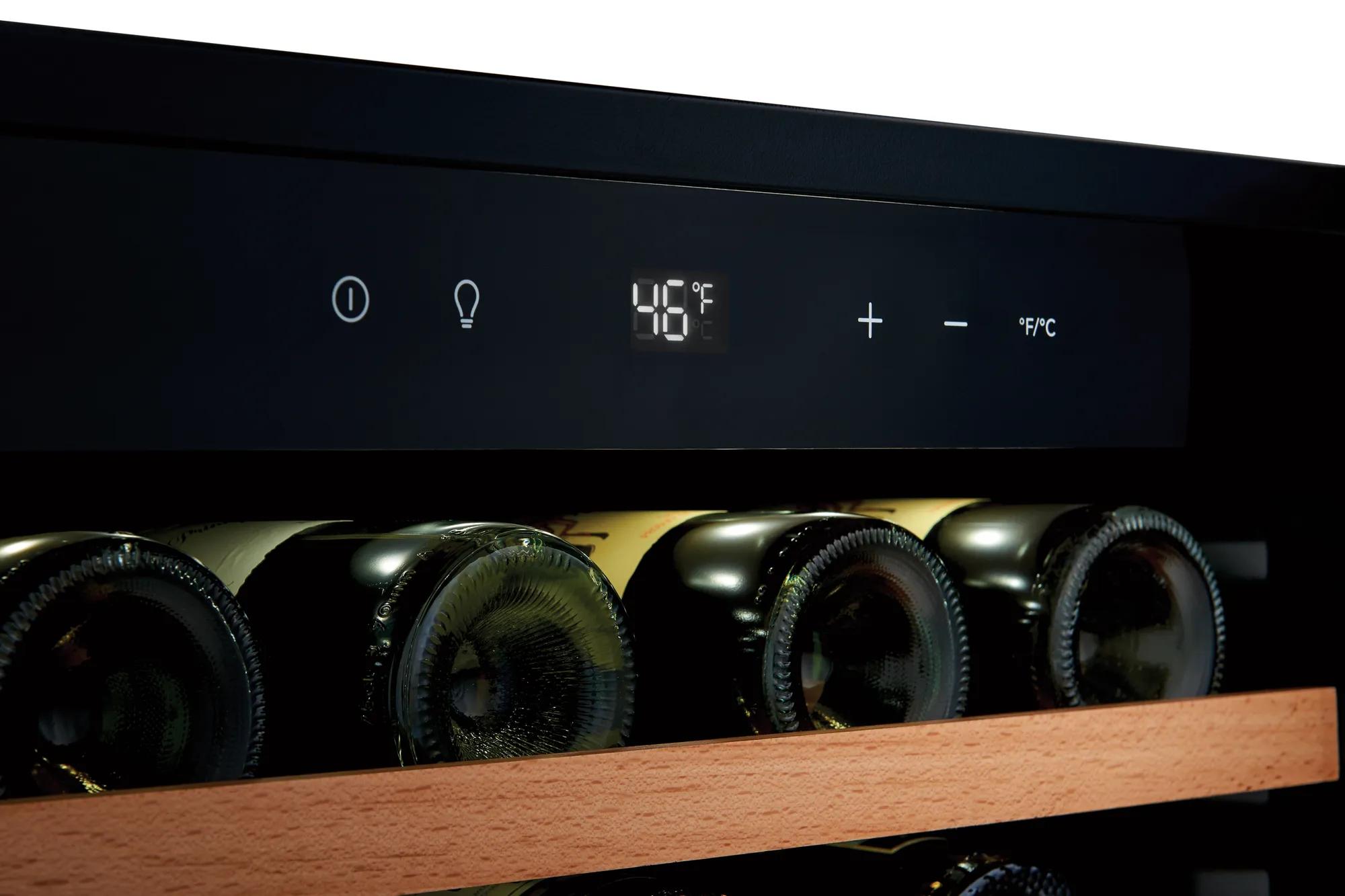 Set temperature anywhere between 41-64 degrees and the wine cooler will hold it precisely.