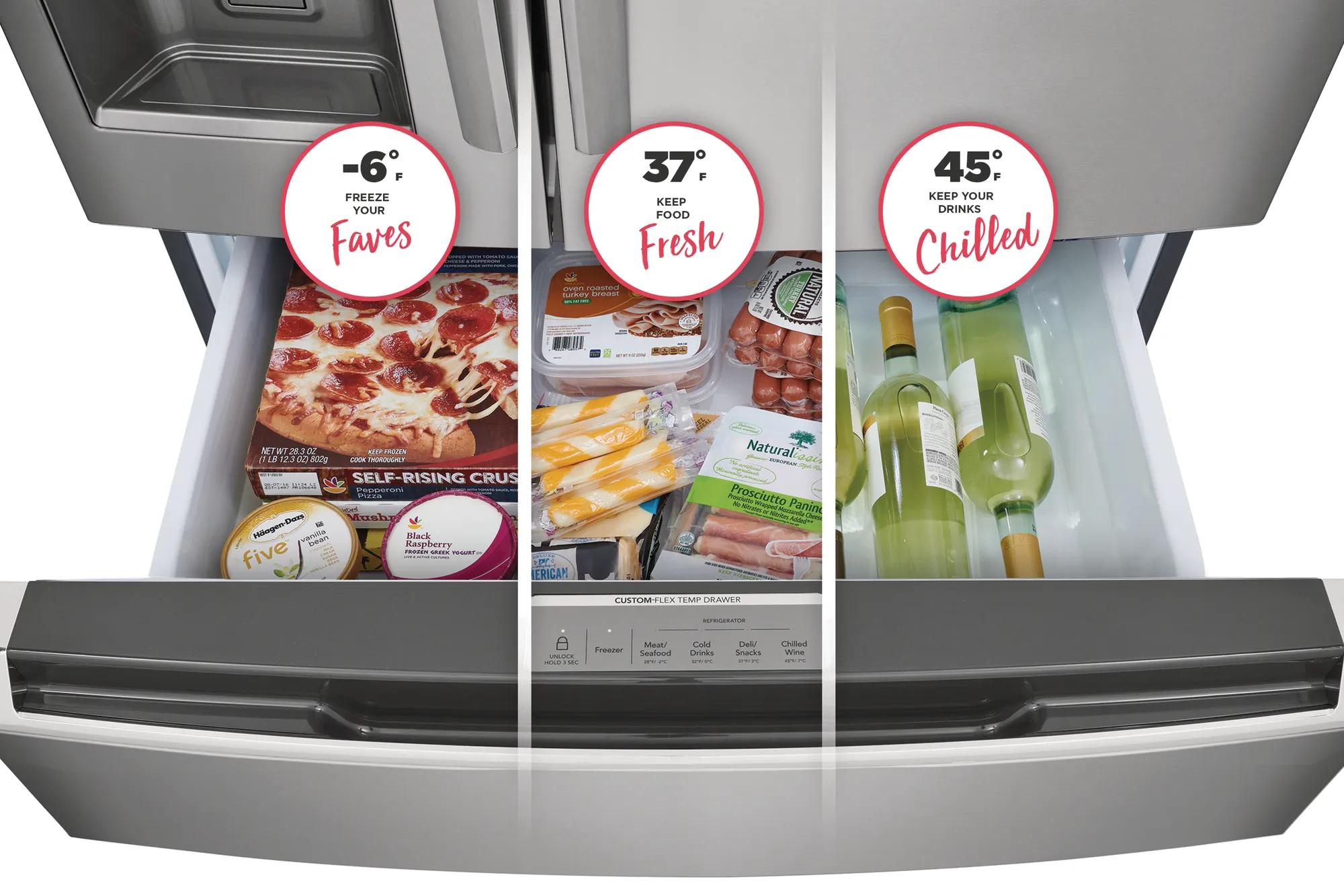 Customize your space for all your most used items. Store yogurt, beer, or frozen pizzas with the middle convertible drawer that can be a refrigerator or a freezer.