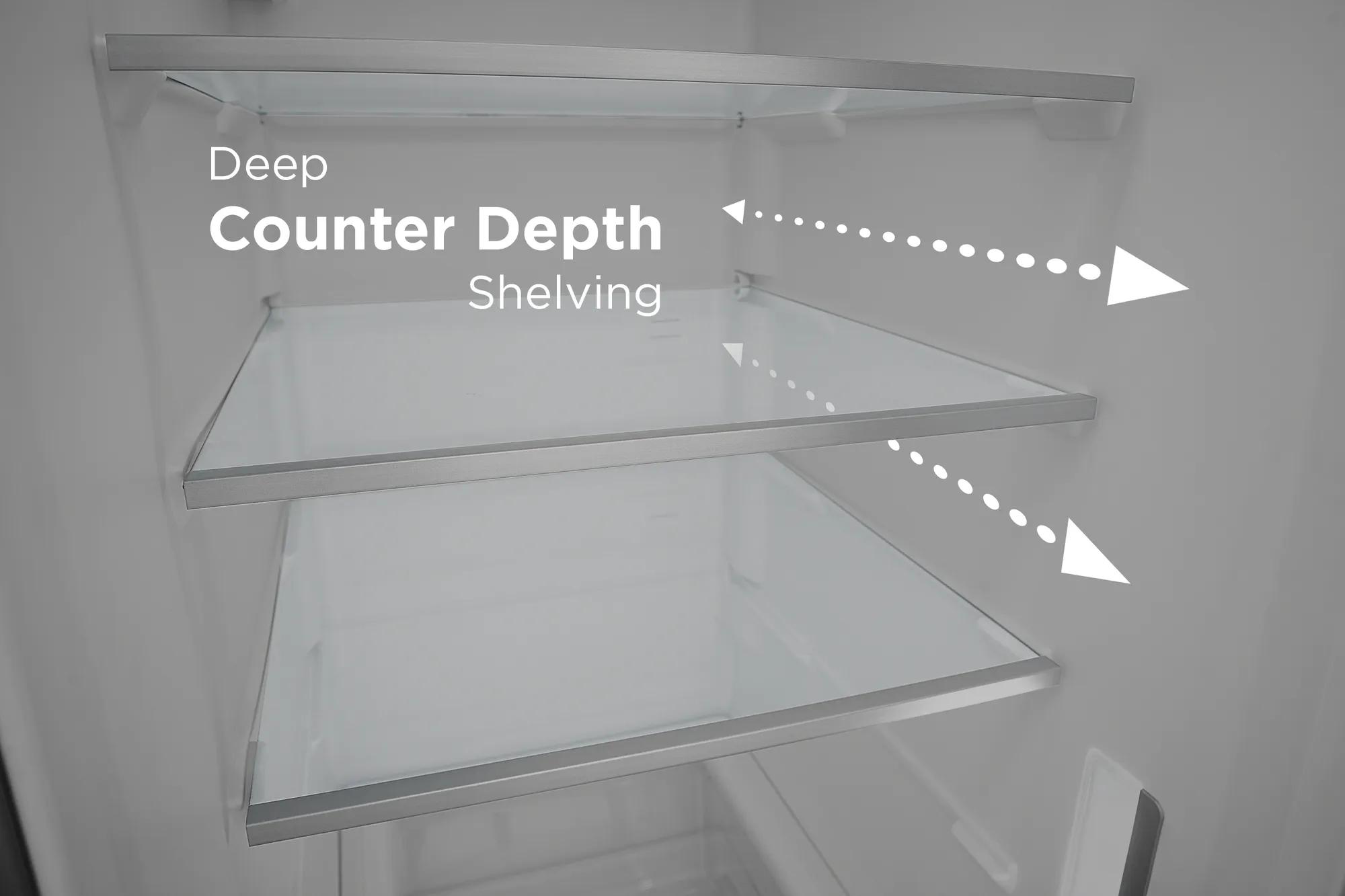 Easily stores all your family’s favorites with deeper shelving space for the same storage as standard-depth. 1