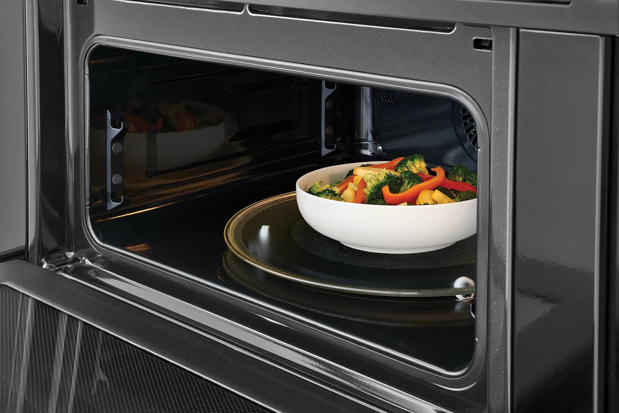 With Steam Bake, steam evenly circulates throughout the oven cavity, resulting in breads and muffins that rise higher and are light and fluffy.