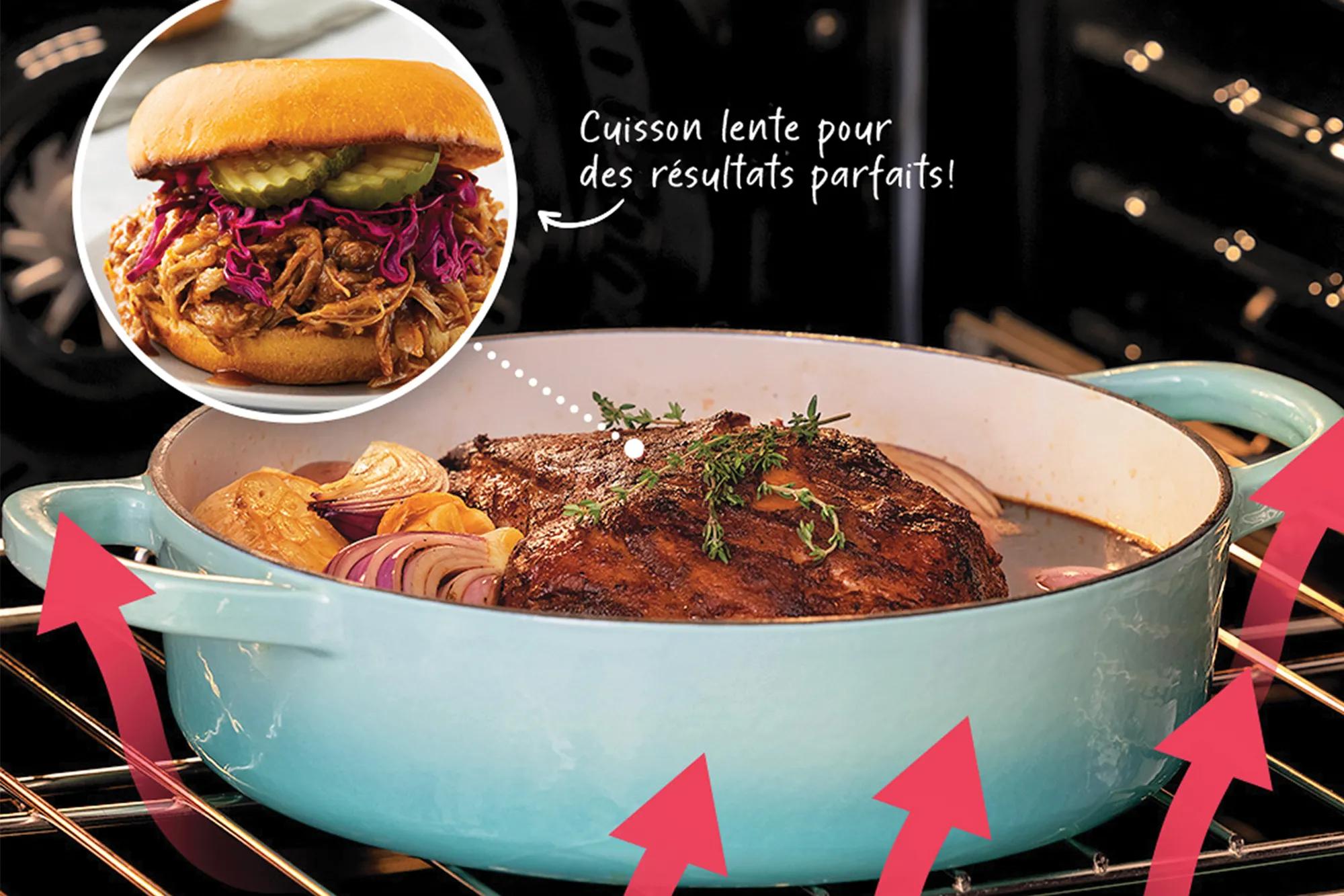 Avec la cuisson lente, vos aliments cuisent lentement et à une température plus basse (aussi basse que 38 °C/100 °F), ce qui vous permet de conserver l’humidité et la saveur sans que vos aliments ne soient trop cuits ou pas assez cuits.