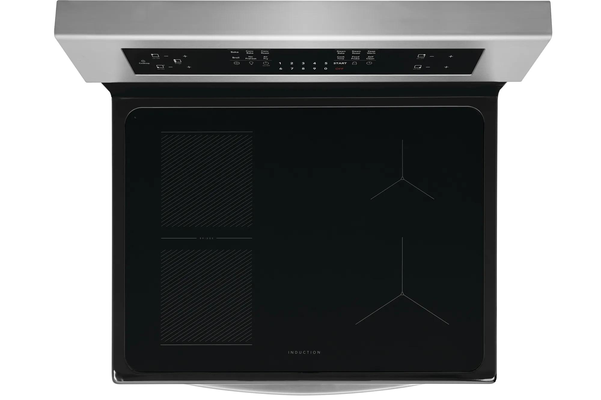 2 Élément avant droit à induction de 8,3 po, casserole de 6 qt/10 po de diamètre, 1 qt d'eau tiède par rapport à un brûleur avant droit au gaz de 18 000 BTU.