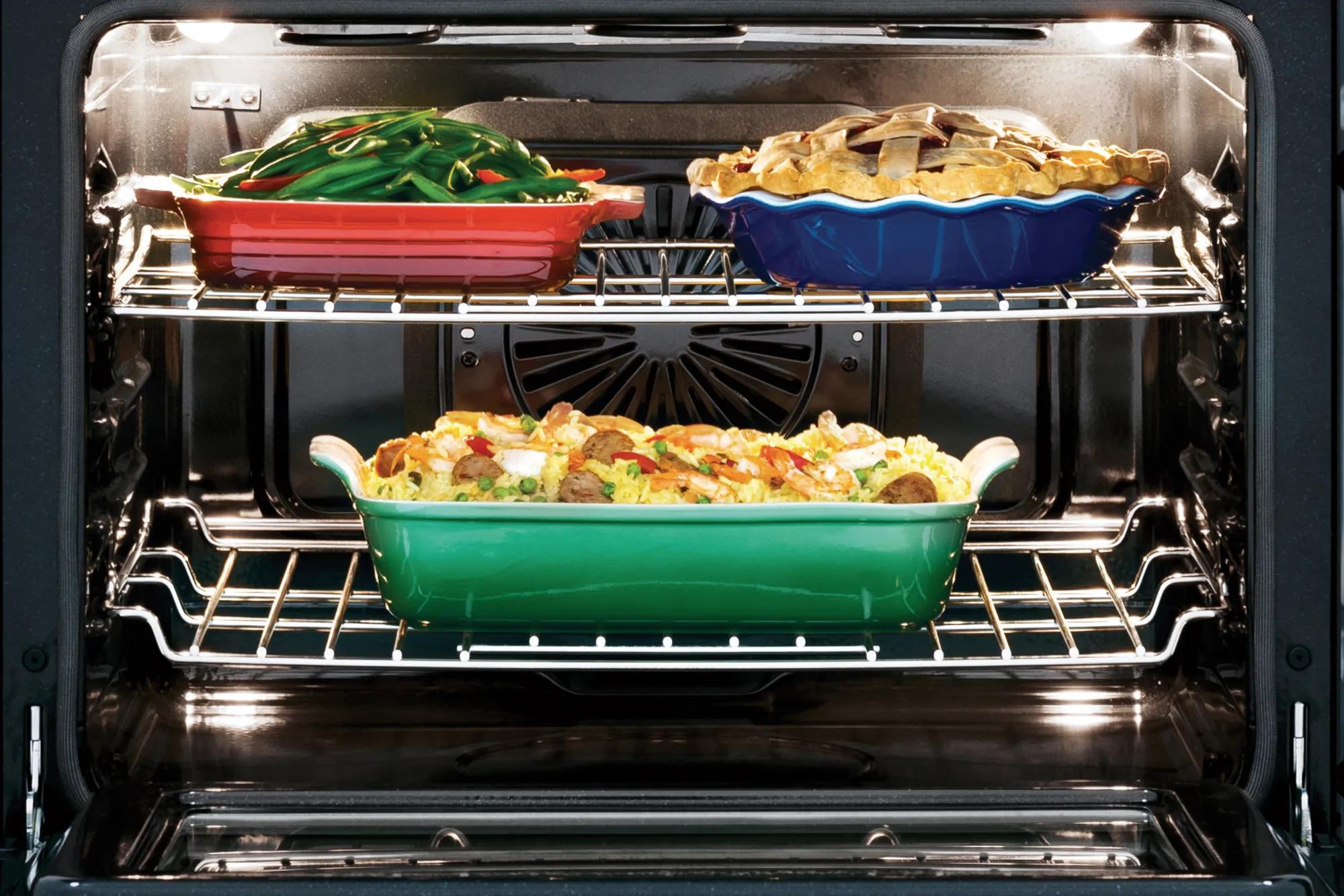 Un troisième élément chauffant et un ventilateur de convection unique font circuler l'air chaud dans le four pour une cuisson plus rapide et plus uniforme.