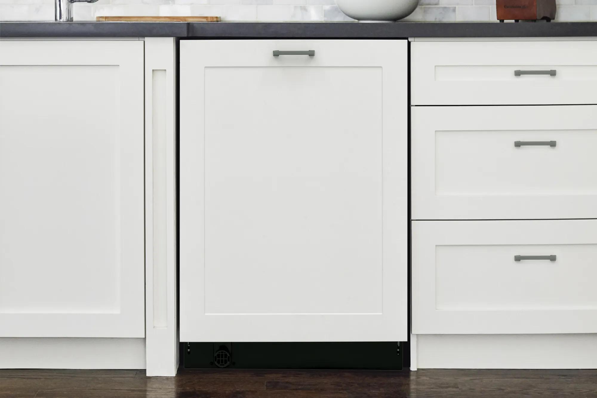 Installez un panneau avant et une poignée personnalisés (panneau et poignée non inclus) sur la porte du lave-vaisselle pour créer en toute simplicité un style encastré qui s’harmonise avec les meubles de votre cuisine.