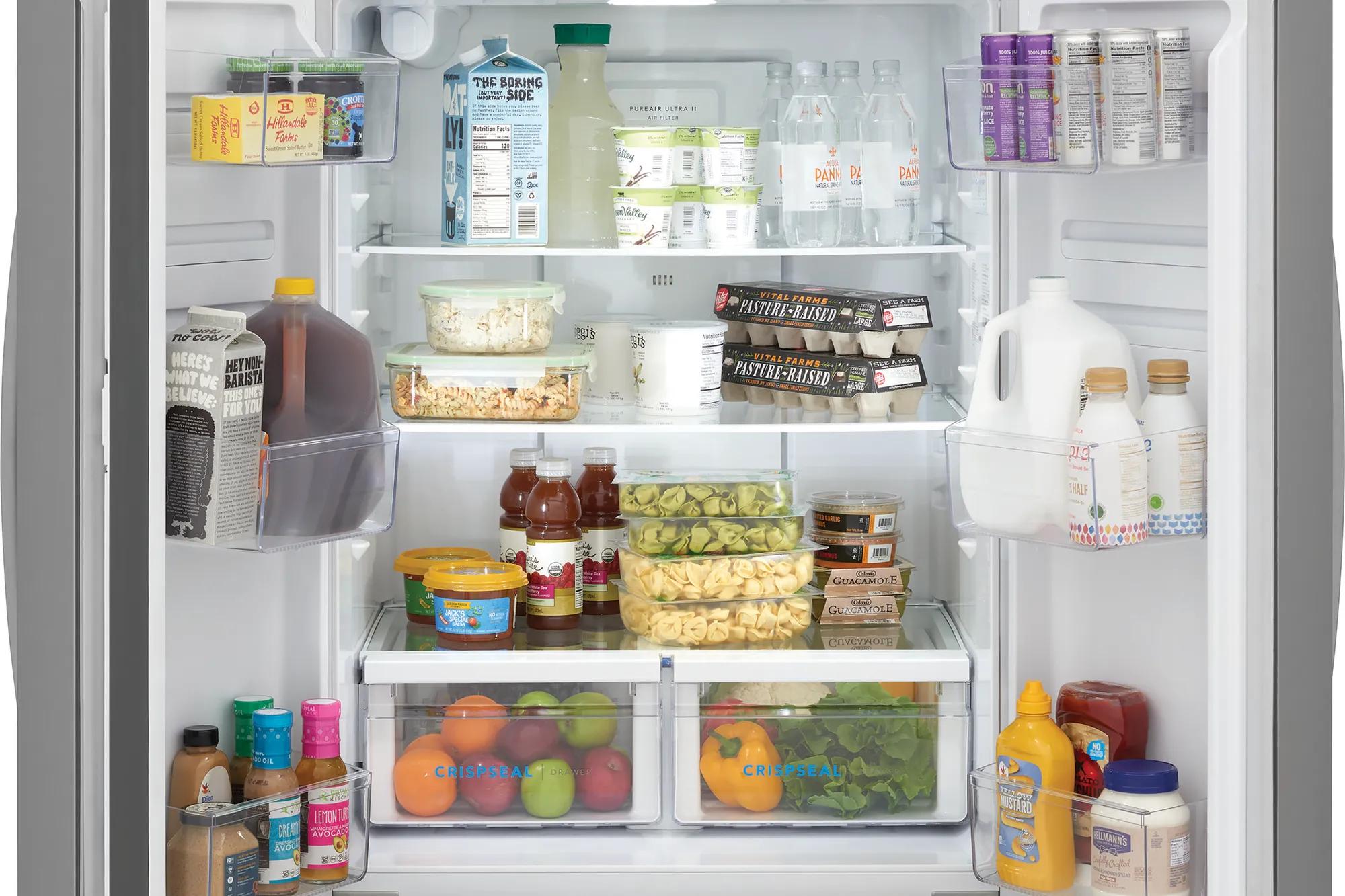Trouvez une place pour tous vos produits préférés grâce à notre bac de rangement pour portes d’un gallon (3,79 l), nos clayettes en verre d’un bord à l’autre et notre congélateur à trois niveaux.