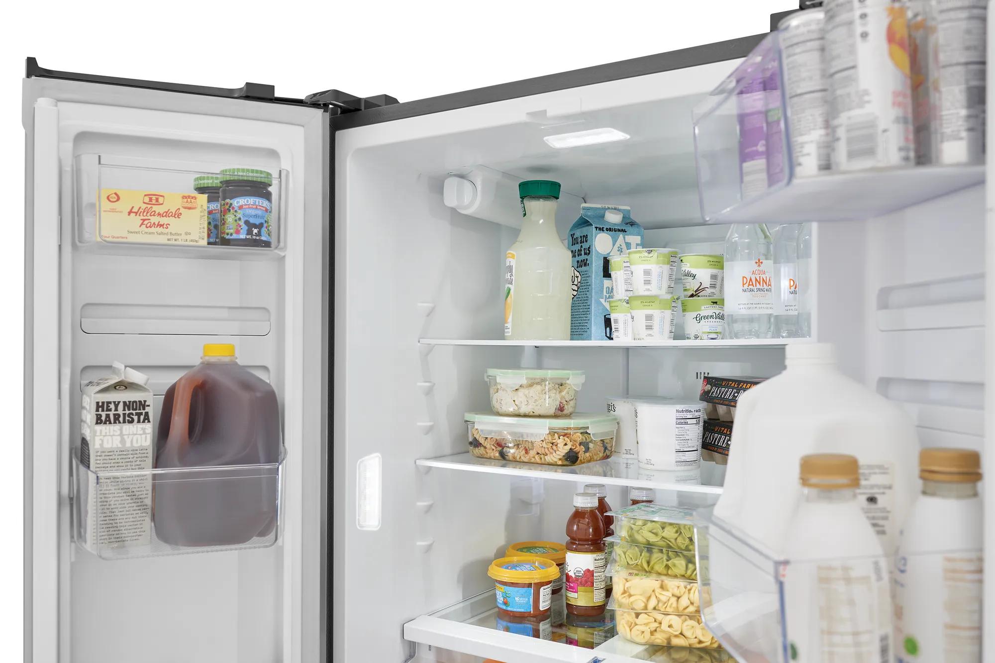 Trouvez une place pour tous vos produits préférés grâce à notre bac de rangement pour portes d’un gallon (3,79 l), nos clayettes en verre d’un bord à l’autre et notre congélateur à trois niveaux.