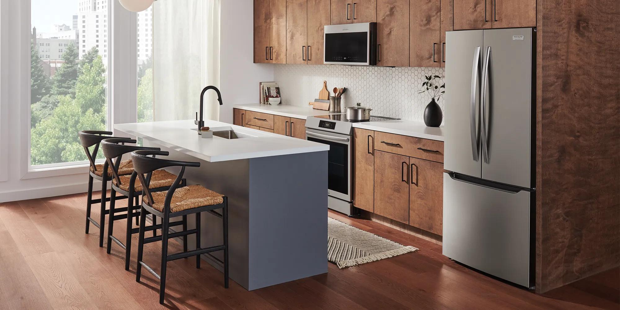 La porte française de 30 po. de largeur s’adapte facilement aux espaces de cuisine étroits et restreints.