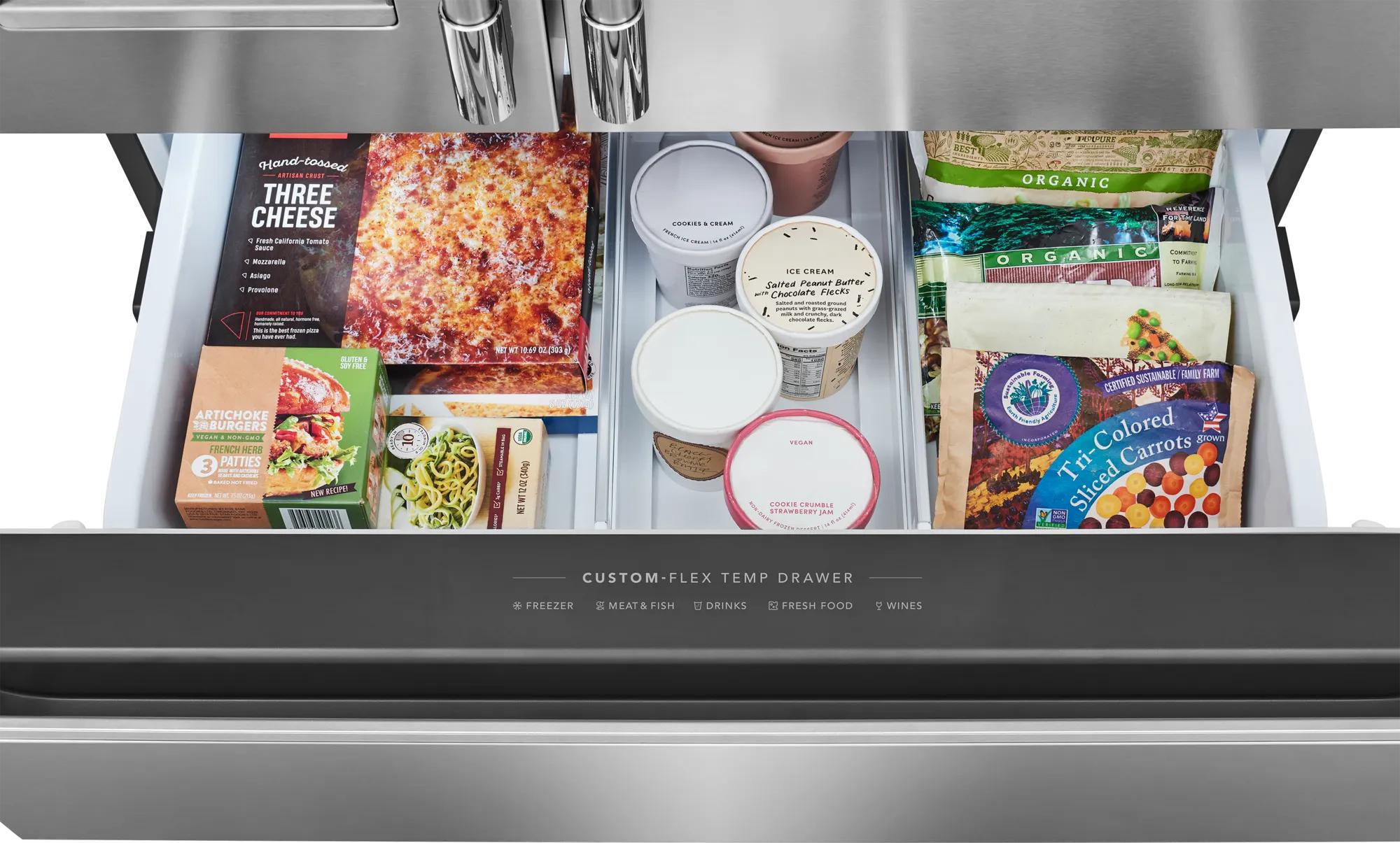 Obtenez davantage d’espace pour vos créations. Rangez des amuse-gueules, du vin ou même de la crème glacée dans le tiroir central qui peut servir de réfrigérateur ou de congélateur.