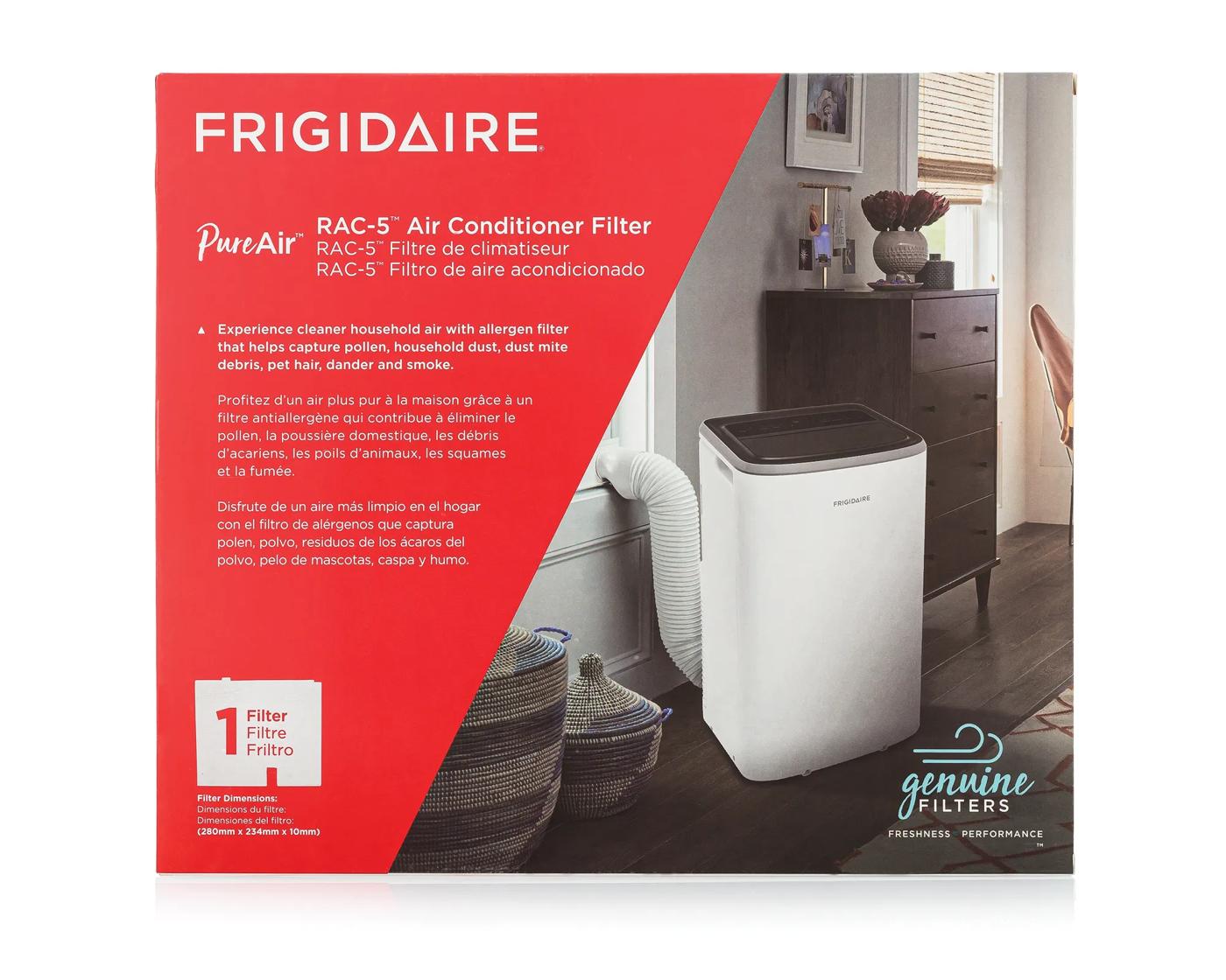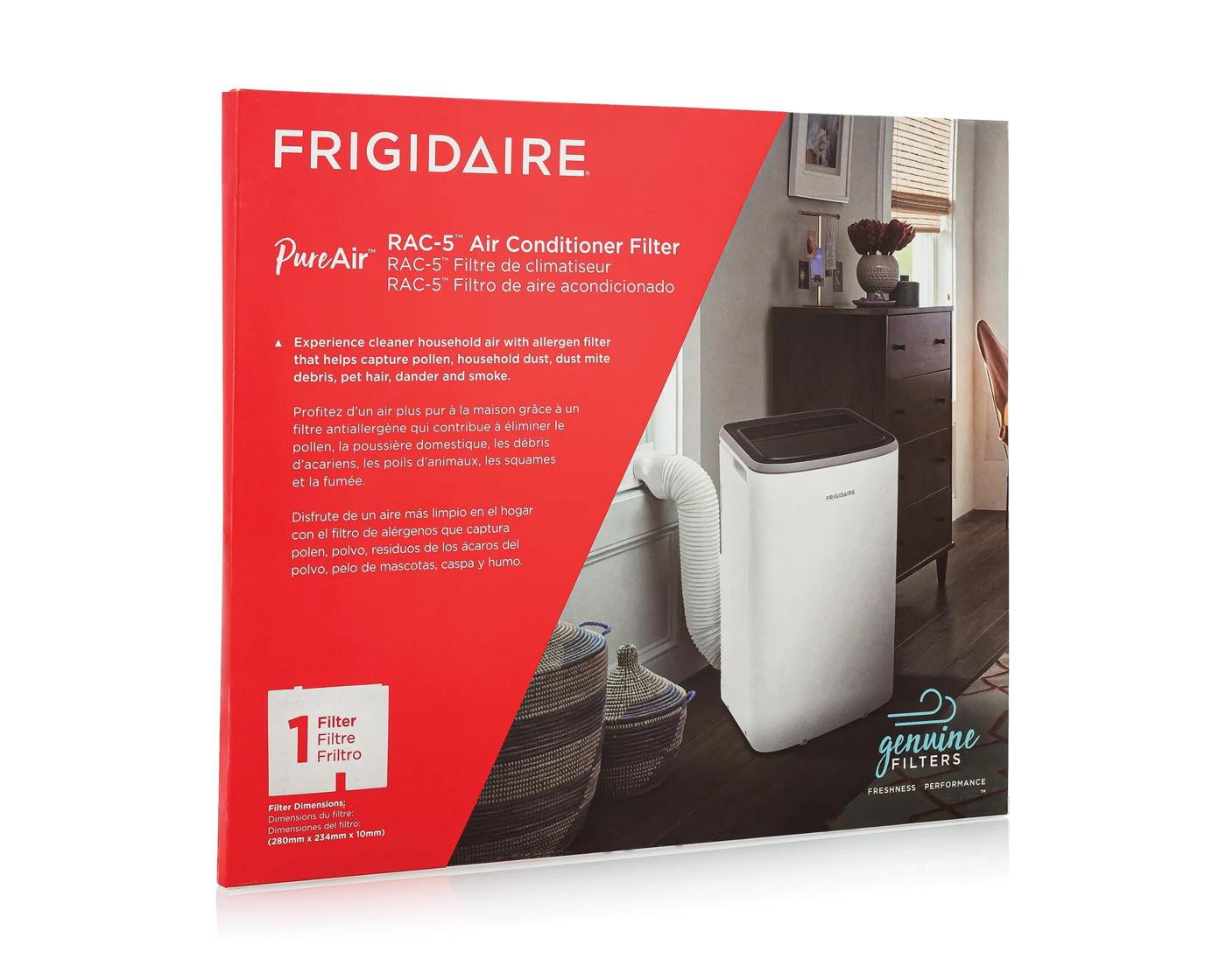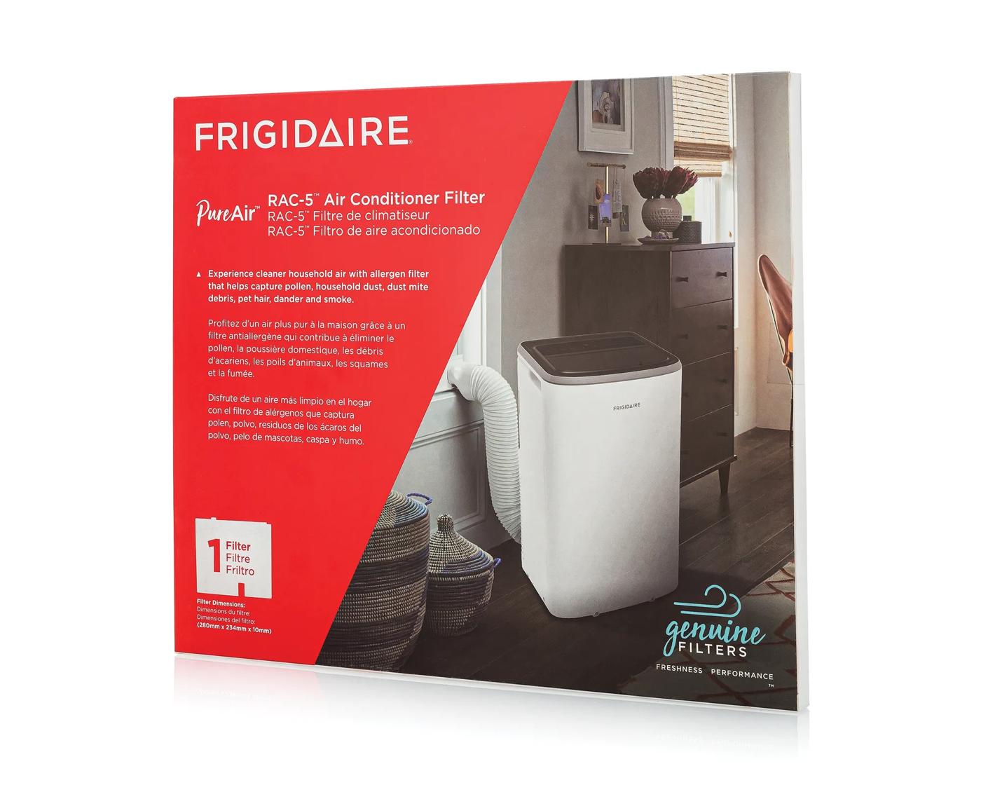 Profitez d’un air plus frais dans votre pièce grâce au filtre de climatiseur PureAir® RAC-5MC. Ce filtre antiallergène aide à capturer le pollen, la poussière domestique, les débris d’acariens, les poils d’animaux, les squames et d’autres particules fines. Faites l’expérience d’un air plus pur à la maison grâce à la conception à haut débit d’air qui capture de manière proactive les particules indésirables de l’air lorsqu’il passe à travers le filtre. Pour une performance optimale, remplacez-le tous les 6 mois ou au besoin. Comprend 1 filtre antiallergène. Le filtre PureAir® RAC-5MC est recommandé pour une performance optimale de certains climatiseurs Frigidaire. Consultez la liste des modèles compatibles ci-dessous.