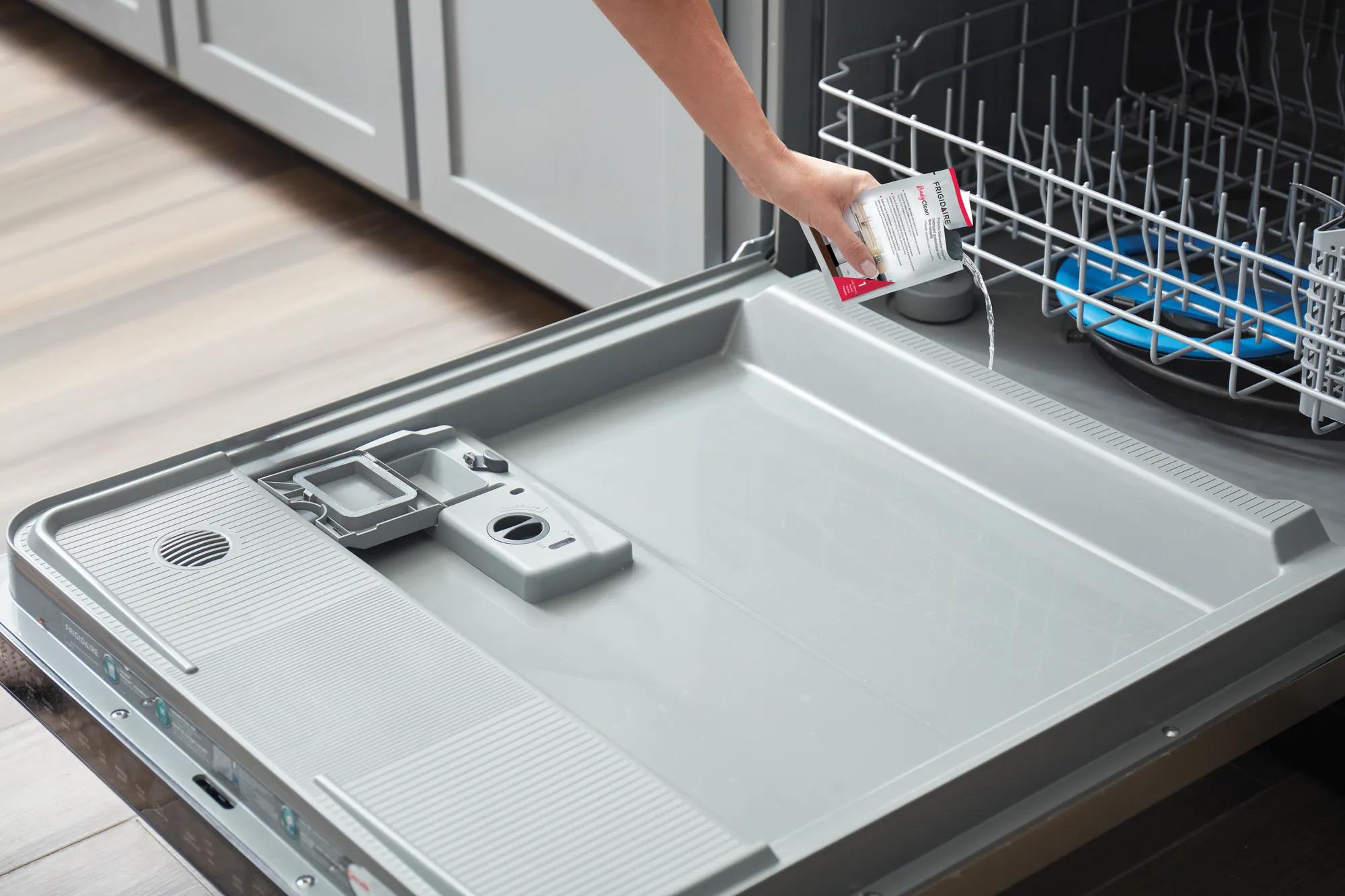 Une boîte de nettoyant à lave-vaisselle probiotique ReadyCleanMC de Frigidaire nettoie et élimine les odeurs de votre lave-vaisselle pendant 6 mois.