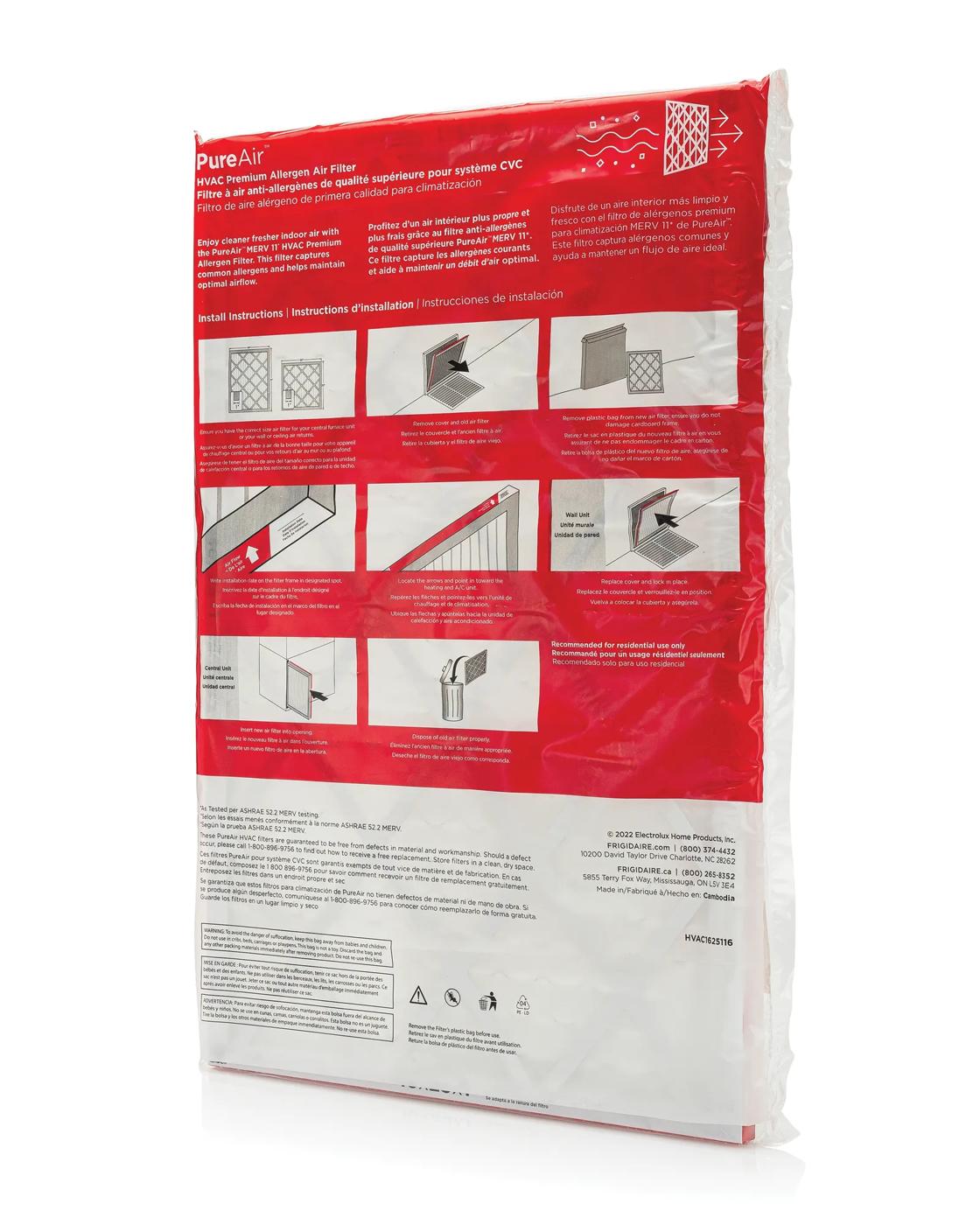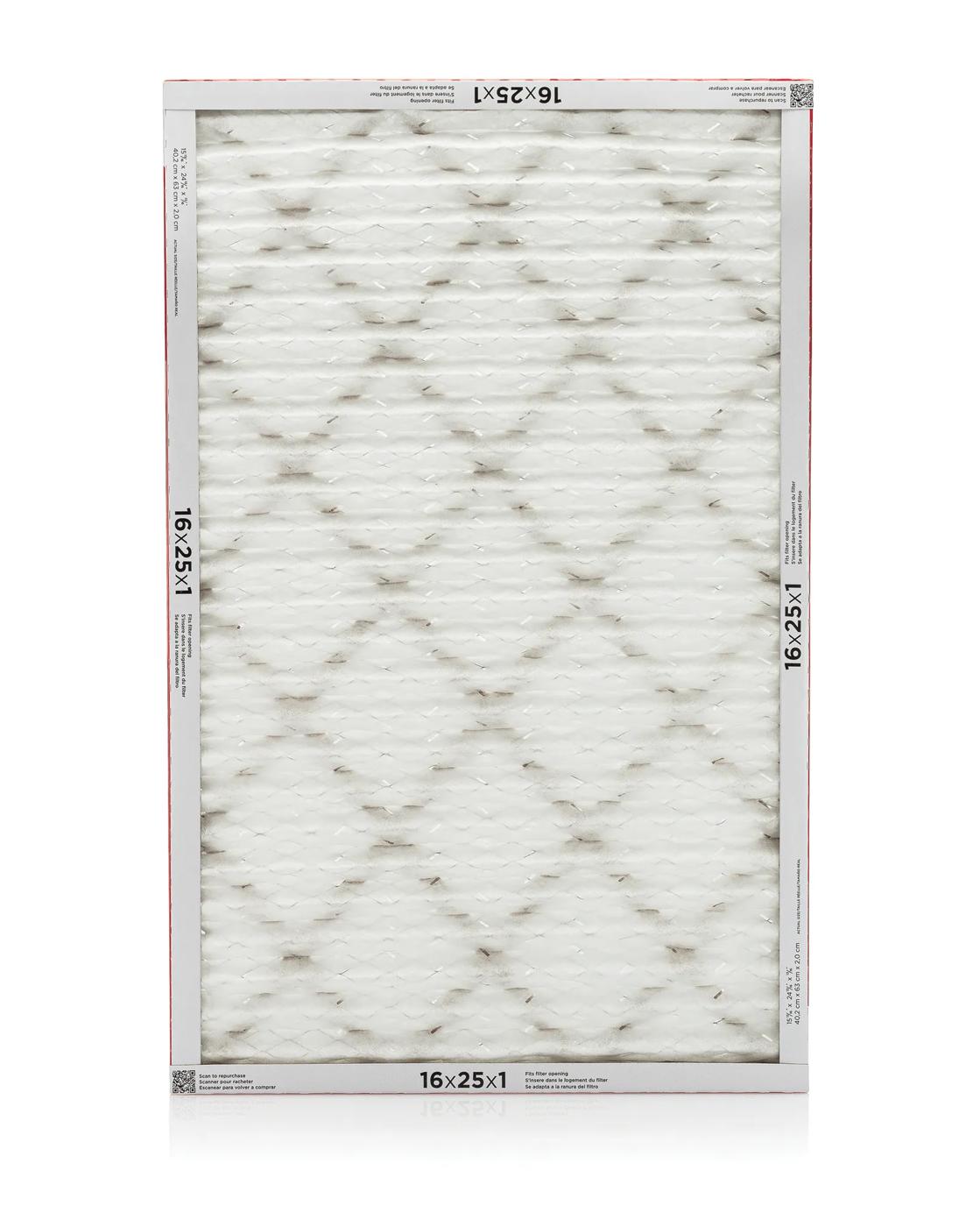 Profitez d’un air intérieur plus propre et plus frais grâce au filtre à air pour allergènes PureAir® MERV 11. Ce filtre capture les allergènes indésirables et aide à maintenir une circulation d’air optimale dans votre maison, filtrant les particules en suspension dans l’air comme le pollen, la poussière domestique, les débris d’acariens, les fibres de tapis, les peluches, les squames d’animaux, la fumée, le smog et bien d’autres encore. Avec une conception plissée, un endos à deux fils électrostatiques et une flèche d’indicateur de circulation d’air offrent une haute performance et une installation simple. Pour de meilleures performances, remplacez-le tous les 3 mois. Le filtre 16x25x1 est compatible avec les systèmes de chauffage résidentiel, de climatisation ou de CVCA standard.